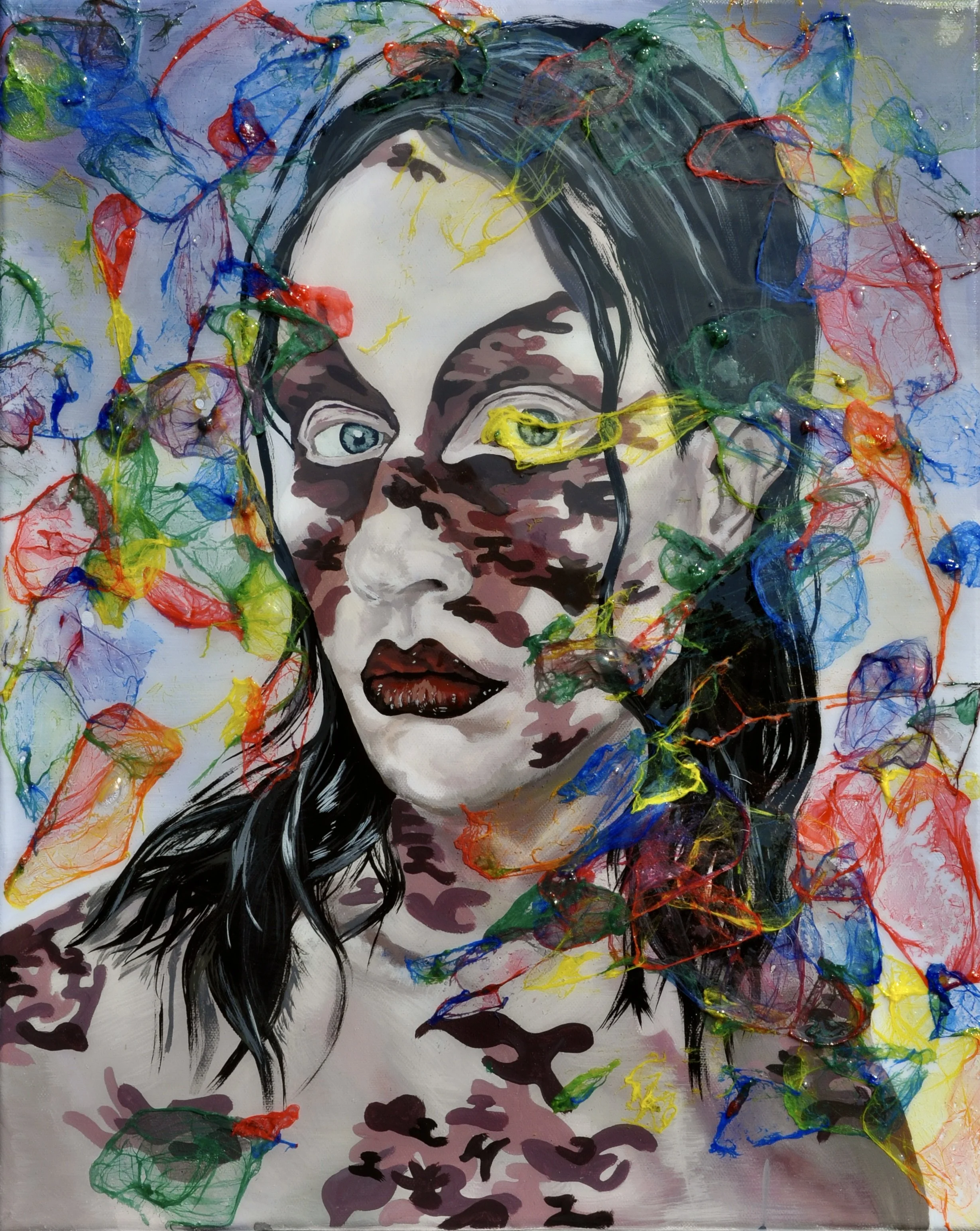 The Paradox of Tragedy 3 | 2023. Acrylic paint, plastic, and resin on canvas. 20 x 16 inches.