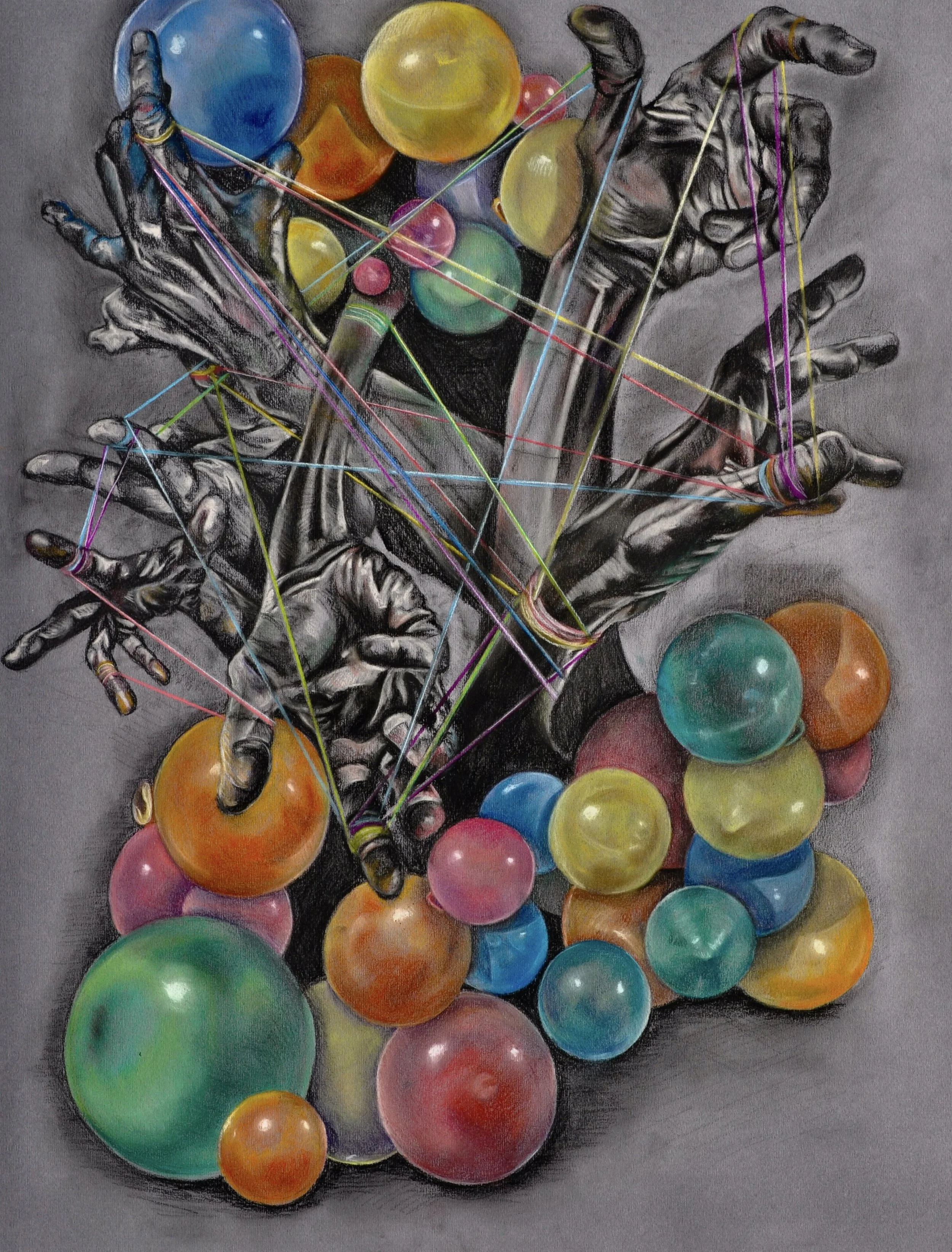 Brutality 1 | 2021. Colored pencil and charcoal on paper. 24 x 18 inches.